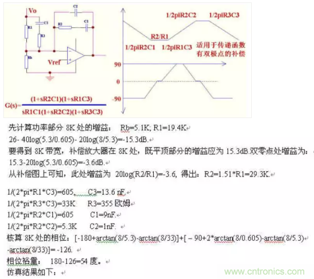 如果相位裕量不夠時,可適當把兩個零點位置提前,也可把第一可極點位置放后一點.
