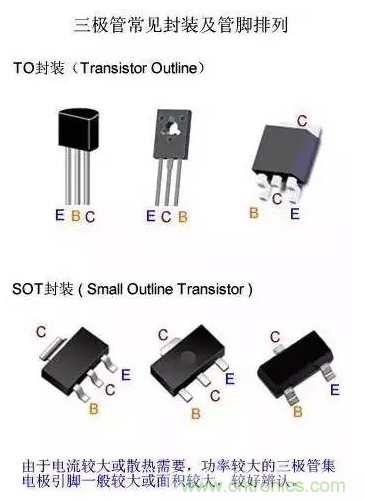 當前,塑料封裝是三極管的主流封裝形式,其中“TO”和“SOT”形式封裝最為常見。