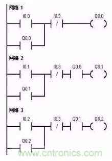 多輸出自鎖控制即多個負載自鎖輸出,有多種編程方法,可用置位、復位指令