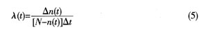 失效密度用來反映產品在全部工作時間失效的分布情況。產品工作到t時刻后,在單位時間內失效的概率稱為失效率λ(t),可用下式表示: