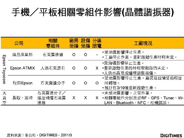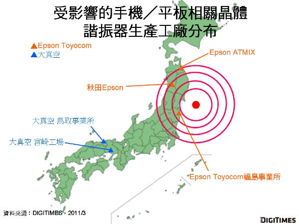 Epson Toyocom位于福島縣南相馬市的福島事務所更因廠房位于福島第1核電廠直徑16公里內(nèi),工廠作業(yè)停擺,復工時程無法估計。