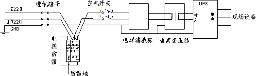 電源防雷主要是針對系統級而言的,系統級設計要按照三級防雷設計,總電源進入端設置電源防雷(如OBO公司的V20-C/3-PH 385),可以對系統的電源進行一級防護,電源經過電源防雷后,進入隔離變壓器,隔離變壓器可以對電磁干擾信號進行較好的防護,抑制其對系統的影響。后進入UPS,UPS可以濾除一部分干擾信號,這樣電源再進入系統設備,電源是一種純凈的電源,可以使系統更好、更可靠的工作。