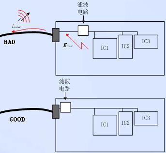 對于時鐘線、總線、射頻線等強輻射信號線和復(fù)位信號線、片選信號線、系統(tǒng)控制信號等敏感信號線,應(yīng)遠離接口外出信號線。從而避免強輻射信號線上的干擾耦合到外出信號線上,向外輻射;也避免接口外出信號線帶進來的外來干擾耦合到敏感信號線上,導(dǎo)致系統(tǒng)誤操作。