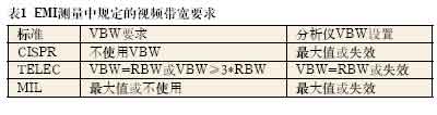 在大多數(shù)EMI測量中,視頻濾波器指定為關(guān)閉,或視頻濾波器指定為至少比測量的指定RBW高出三倍(參見表1)。