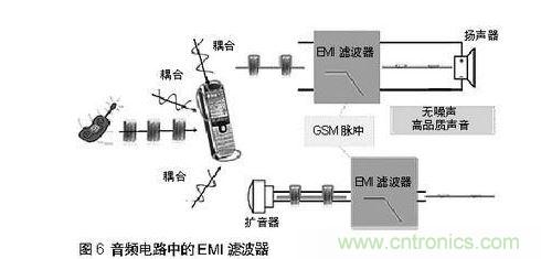 在音頻電路中如有電磁干擾(EMI),會出現嘶嘶、噼啪、嗡嗡等聲音,聲音質量很差。手機用戶無法忍受這樣的干擾。因此,必須設法過濾音頻電路的電磁干擾。