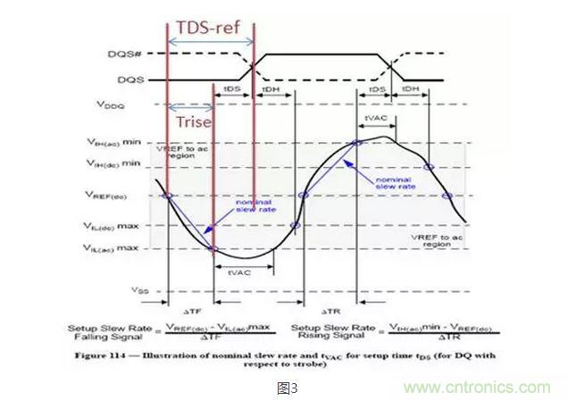 由圖2表格中可以看到derating的取值是與data,strobe的slew rate有關(guān),還和判斷門限有關(guān)的。這個(gè)怎么理解呢?