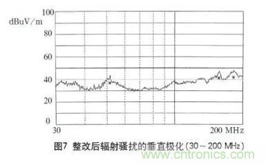 由測試結果可以看出,通過電磁兼容設計在傳導騷擾抑制方面取得了良好效果,在高頻段輻射騷擾的設計也達到了預期效果,下面還需對在30~200MHz頻段范圍內的輻射騷擾進行改進設計。