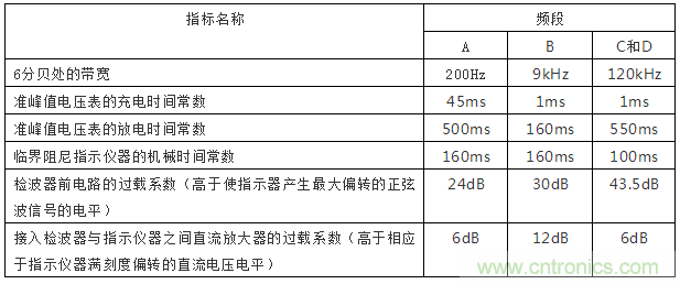 表5:騷擾測(cè)量?jī)x峰值測(cè)量時(shí)的指標(biāo)