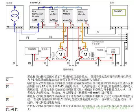 互相通信的設備也是一樣的,如果各自的零電位不一致,會導致信號幅值超差,不能正常通訊,具體表現為偶發通訊中斷和通訊端口損壞等故障,下圖為常見的電柜內等電位接地示意圖。
