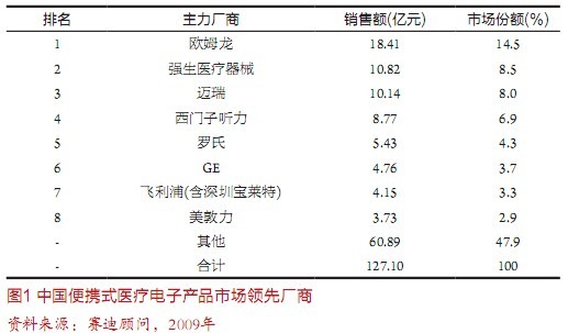 據賽迪顧問預測,未來三年,中國便攜醫療電子市場年復合增長率將超過30%,其市場規模從2006年的80億元迅速擴大到2011的280億元。