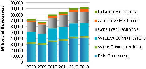 - 全球半導體市場2010年也將增長13.7% 到2610億美元
