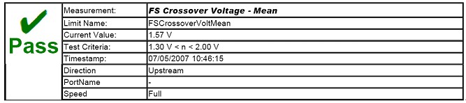 示波器采集波形并按規(guī)程測量參數(shù)后,QualiPHY軟件會自動將其與標(biāo)準(zhǔn)值做對比,并輸出此參數(shù)通過或失敗的結(jié)論。下圖5展示了QualiPHY軟件包對FS Crossover Voltage - Mean分析的結(jié)果,實(shí)際測量值為1.57V,USB-IF標(biāo)準(zhǔn)合格范圍是1.30V到2.00V,顯然此參數(shù)測試通過。