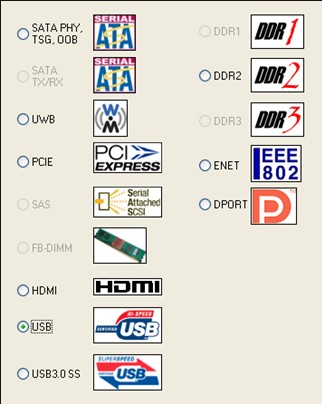QualiPHY軟件集成了多種串行協(xié)議,不僅支持USB2.0協(xié)議,而支持其他流行的串行協(xié)議諸如SATA、UWB、PCIE、SAS、FBDIMM、HDMI、DDR2、ENET等,如下圖所示。不同的串行協(xié)議采用相同的用戶界面和操作方法,工程師無需重復(fù)學(xué)習(xí),舉一反三即可快速掌握全部協(xié)議的一致性測試流程。