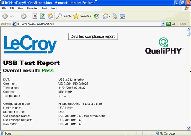圖7 QualiPHY軟件自動生成USB2.0一致性測試報(bào)告