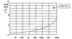 圖2根據(jù)額定電阻值而變化的典型電流噪聲等級(jí)