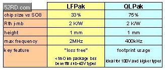 LFPak類似于Dpak等傳統(tǒng)的功率封裝,但是由于Dpak引腳和內(nèi)部引線的電感,設(shè)計(jì)頻率始終無法突破200kHz 甚至更低的值。而LFPak 采用內(nèi)部夾層構(gòu)造,不再使用任何引線,從而在工作頻率方面取得了重大突破,今天的硅片可達(dá)到2MHz 。