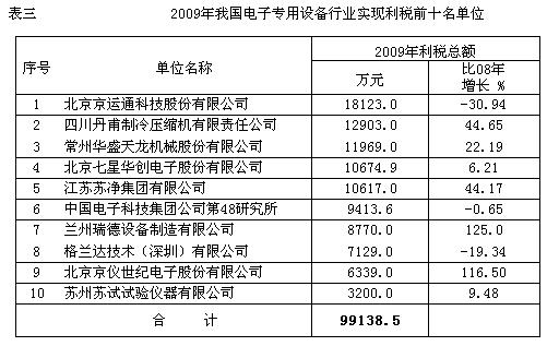 2009年我國電子專用設(shè)備行業(yè)完成的各項主要經(jīng)濟指標見表一: