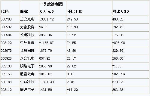 另外從電子類上市公司的已公布一季度報(bào)告的上市公司來(lái)看,三安光電、力合股份、長(zhǎng)電科技分列凈利潤(rùn)環(huán)比上漲前三位。其中三安光電和長(zhǎng)電科技分別受益于國(guó)家新興產(chǎn)業(yè)政策中的LED和手機(jī)支付。三安光電是國(guó)內(nèi)規(guī)模最大的全色系超高亮度LED芯片生產(chǎn)企業(yè),而長(zhǎng)電科技是國(guó)內(nèi)半導(dǎo)體封裝的龍頭企業(yè)。在國(guó)家不斷推出支持新興產(chǎn)業(yè)發(fā)展的政策大背景下,電子行業(yè)的景氣度還將繼續(xù)維持在高位。