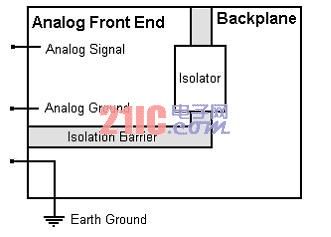 經隔離處理的測量系統為模擬前端和系統背板分別提供接地面,以使傳感器測量與系統其他部分相分離。該隔離前端的接地連接是一個可以工作于與大地不同電勢的浮動管腳。圖1展示了一個模擬電壓測量設備。存在于傳感器地和測量系統地之間的任何共模電壓都會受到抑制。這樣可以防止接地環路的形成,并剔除傳感器線路上的任何噪聲。