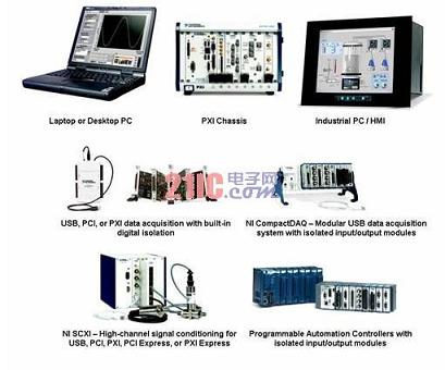 對于采用通用數據采集設備和外部信號調理硬件的測量產品,市場上有數種配置可供選擇。例如,NIM系列包含多款提供高性能模擬I/O和數字I/O的非隔離式通用多功能數據采集設備。對于需要隔離功能的應用,您可以使用M系列設備及配套的外部信號調理電路,如NI公司的SCXI模塊或SCC模塊。這些信號調理平臺提供了您為了實現與載荷測量計、應變計以及pH傳感器等工業傳感器直接連接所需的隔離功能和專用信號調理功能。