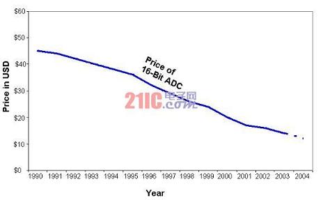ADC是任何模擬輸入數據采集設備的關鍵組件之一。為了獲得最佳性能,ADC的輸入信號應當盡可能接近原始的模擬信號。模擬隔離可能會在信號到達ADC之前導致包括增益、非線性和偏偏移量等誤差。將ADC放置在更為接近信號源的位置可以獲得更好的性能。同時,模擬隔離組件價格較高,而且可能存在建立時間過長的缺點。盡管數字隔離可以獲得更好的性能,但是,在過去使用模擬隔離的原因之一卻是為昂貴的ADC提供保護。由于ADC的價格已經大幅下降,測量設備的供應商們正在選擇通過對ADC的保護來換取數字隔離裝置所提供的更好性能和更低成本,如圖9所示。