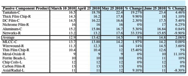 - 截止6月25日被動(dòng)元件交貨期和上月相比再次提升2%