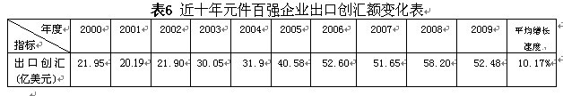 從第14屆元件百強到第23屆元件百強的十年間,元件百強出口創匯額增長了2.4倍,年平均增長率達到10.17%(見表6,圖二)。