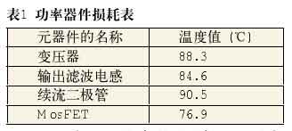各功率器件的損耗如圖2所示。在圖2中,Pt是原邊變壓器損耗;Pl是輸出濾波電感的損耗;Pmos是MosFET的損耗;Pd1是整流二極管的損耗;Pd2是續(xù)流二極管的損耗;Pother是其他器件的損耗和。