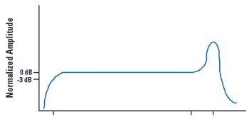 壓電傳感器可以感測(cè)滾軸所產(chǎn)生的振動(dòng)頻率及超聲波噪聲。壓電傳感電路由MOSFET為其提供內(nèi)部緩沖,而驅(qū)動(dòng)MOSFET的電流則來自A4的恒流源,通過交流耦合在內(nèi)部連接到濾波器。A1、A2及A3放大器組成一6極點(diǎn)低通濾波器并提供41.9dB的增益。取樣率為200kHz的ADC121S021模擬/數(shù)字轉(zhuǎn)換器負(fù)責(zé)將已放大及濾波的信號(hào)轉(zhuǎn)為數(shù)字信號(hào)。微處理器的軟件可以通過快速傅里葉變換(FFT)取得有關(guān)信號(hào)頻率及振幅的數(shù)據(jù)。圖中所示電路的通帶約為40kHz。圖2則顯示典型寬頻帶振動(dòng)傳感器的傳遞函數(shù)。