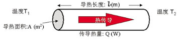 式中:Q為傳導熱量(W);K為導熱系數(shù)(W/m℃);A為傳熱面積(m2);L為導熱長度(m)。(T1-T2)為溫度差。
