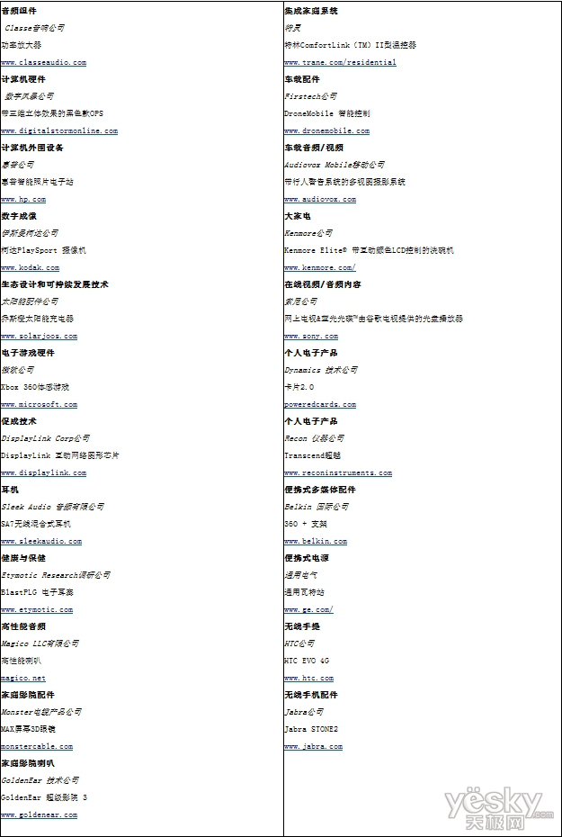 獲得最佳創新獎的產品是評委們給出最高分的作品,它們將在2011年國際消費電子展拉斯維加斯會議中心的大廳內亮相,陳列在“2011創新設計 與工程陳列專區”。這場全球規模最大的消費電子產品行業展將于2011年1月6日-9日 盛大開幕。