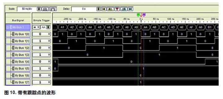 用戶非常熟悉的另一個示波器術語是“觸發”。它也在邏輯分析儀中使用,但常稱為“跟蹤點”。與示波器的跡線總是在觸發后開始不同,邏輯分析儀連續捕獲數據,并在找到跟蹤點后停止采集。這樣,邏輯分析儀就能顯示出被稱為負時間的跟蹤點前的信息,以及跟蹤點后的信息。[page]