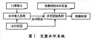 門票是觀看奧運會、演唱會、參加高級會議的入場券。隨著高質量圖像輸入輸出設備的發展,特別是精度超過1200dpi的彩色噴墨、激光打印機和高精度彩色復印機的出現,門票的偽造變得更加容易。所以人們迫切需要一種有效的門票防偽及檢測技術。傳統的防偽技術,基本上都采用材料防偽,屬于共性化防偽。如果被人仿冒,后果不堪設想,也存在造價高等缺點。而數字水印技術屬于個性化防偽技術,它是與個性特征相結合,并且不改變成熟的印刷工藝,不改變印刷材料與設備,不增加印刷成本,是目前較好的防偽技術。