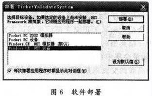 在Visual Studio 2003中進行軟件設計,并在模擬器中調試成功之后,就可以將軟件下載到實驗平臺中運行,在軟件進行部署前安裝ActiveSync 4.1,并在軟件進行部署時選中“Windows CE.NET、設備”見圖6。