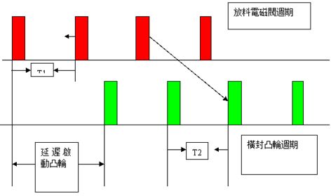 根據熱封的電子凸輪周期0~360設定促發開啟放料閥即可。比如,在開機前假設設定50度,放料。實際出現夾料。調整促發角度到150,直到合適為止。因為落料時間足夠短,一個周期按120袋來算也有500ms。