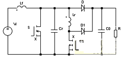 在每次主開關管S導通前,先導通輔助開關管S1,使輔助諧振網絡諧振。當S兩端電容電壓諧振到零時,導通S。當S完成導通后,立即關斷S1,使輔助諧振 電路停止工作。之后,電路以常規的PWM方式運行。該拓撲結構在不增加電壓/電流應力的情況下,實現了S的零電壓導通和D的零電流關斷。但由于S1是在大 電流(接近諧振峰值電流)下關斷、大電壓(接近輸出電壓)下開通, S1處于一種非常不好的硬開關環境。
