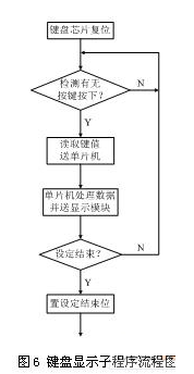 系統軟件總體流程圖如圖3所示。系統上電后,首先進行初始化,對寄存器和I/O端口進行設置。當檢測到按鍵有效信號,讀取按鍵數據,傳遞給單片機并送顯示模塊顯示,鍵盤設定結束后置標志位,單片機檢測到此信號后,開啟第1路繼電器進行加熱。此時初始化數字溫度計DS18B20進行溫度測量,并將測得實時溫度數據送單片機處理,再由顯示模塊顯示。DS18B20每測完一次溫度后,就將實測溫度值與設定溫度值的上限和下限進行比較,如實測溫度高于設定溫度的上限,轉到繼電器關閉處理程序,檢測每一路繼電器的開、關狀態,按照第3路、第2路、第1路的順序關閉繼電器(每執行1次關閉1路繼電器);如實測溫度低于設定溫度的下限,轉到繼電器開啟處理程序,檢測每一路繼電器的開、關狀態,按照第1路、第2路、第3路的順序開啟繼電器(每執行1次開啟1路繼電器)。在之后的系統工作中始終循環測溫~溫度值比較~開啟或者關閉繼電器這樣的流程,以達到對加熱區域溫度恒溫控制的目的。