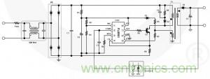 圖中小電容 (C1) 是為衰減高頻噪音濾波器元件。 50W 負載下,功率可高達 84%,剩余 8W 為熱損耗。