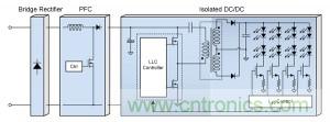 圖 5. 高壓功率拓撲,結合 PFC 輸入與 LLC 諧振控制