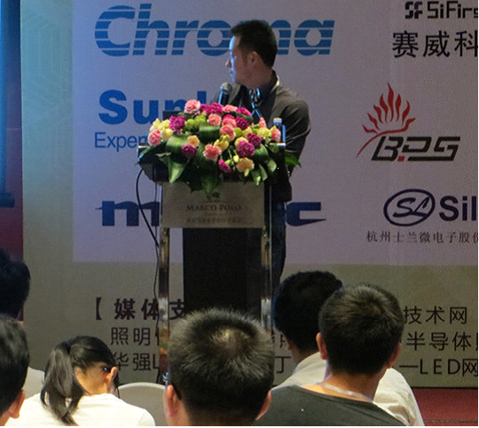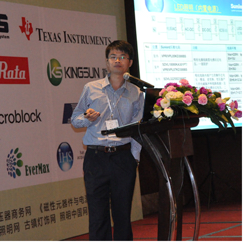 聚積科技照明產品總監俞仲威帶來了《LED照明IC設計與電源模組應用趨勢》。首先講述LED照明發展的市場,再分析LED燈管的發展,講解不同燈具對模組設計帶來的沖擊、LED應用趨勢,最后拋出可控硅調光的議題,與現場聽眾進行了探討。