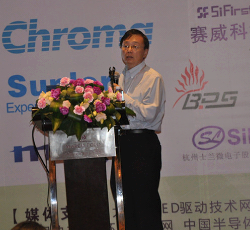 士蘭微產品應用工程經理蔡擁軍發表了《照明驅動器新產品及方案》的演講,主要從DC-DC LED驅動器和AC-DC LED驅動控制器及未來產品的趨勢作報告。為國內規模最大的集成電路芯片設計與制造一體(IDM)的企業之一,士蘭微在今年新推出了幾款LED驅動控制器產品。以非隔離AC-DC控制器為主,例如SD6900。隔離型AC-DC產品推出了SD6955。