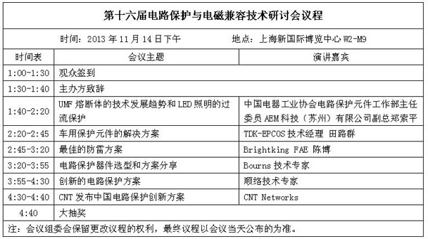 由電子元件技術(shù)網(wǎng)(m.sz-bosch.com)攜手我愛方案網(wǎng)( www.52solution.com) 、82屆中國電子展和 China Outlook Consulting主辦的第十六屆電路保護(hù)與電磁兼容技術(shù)研討會(huì),將于2013年11月14日在上海舉辦。Bourns、AEM科技 、TDK-EPCOS、君耀電子和順絡(luò)電子等全球知名的電路保護(hù)與電磁兼容設(shè)計(jì)技術(shù)廠商的專家將現(xiàn)場展示其最新的產(chǎn)品,針對工業(yè)、通信、汽車等長三角地區(qū)的優(yōu)勢產(chǎn)業(yè)提供解決方案,與廣大長三角地區(qū)的電子產(chǎn)品設(shè)計(jì)開發(fā)人員深入互動(dòng)。