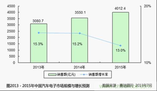 2013-2015年中國汽車電子市場規(guī)模與增長預測