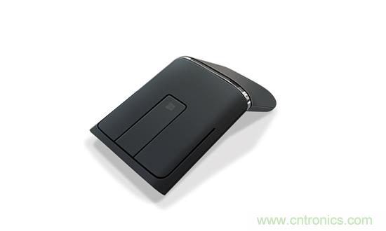 Lenovo N700 采用單節 AA 電池供電,使其設計更加輕薄 (1.5 厘米厚,81.5 克重),采用 Nordic Semiconductor nRF51822 業界領先的 ULP 特性也使它的電池壽命可長達 9 個月(2.4GHz 操作模式,而在藍牙 v4.0 操作模式下則為 6 個月)。在鼠標模式下,N700 為 130 度角設計,經驗證符合人體工程學,在演示器或旅行模式下可折疊放平,以保持用戶的舒適度(參見圖4)。N700 還使用高度靈敏的觸控條取代傳統的滾輪。