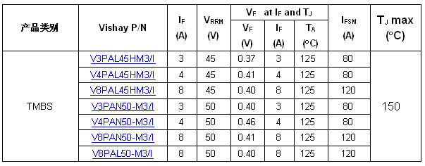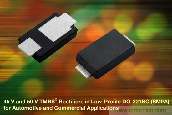 Vishay推出用于汽車和商業應用的新款45V和50V TMBS整流器