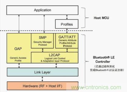 圖2:主機(jī)和Bluetooth® LE控制器堆棧結(jié)構(gòu)