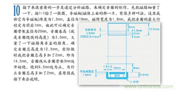 把繞好的音圈放入磁隙中,音圈正好在磁隙寬度的中間,音圈的卷高也在導磁板厚度的中心是由問題的,著就等于音圈已經打底了。這是音圈只能向上運動,不能向下運動,為什么做成這樣呢?我來解釋一下前面的那個問題。就是我把音圈總高從12.5mm加到了14.5mm的原因,通過計算,若我把音圈總高做成12.5mm,從音圈骨架1mm處向上繞線,那么當3.5mm的音圈卷高定位在導磁板厚度的中心。音圈離打底還有2mm,減去1mm的向下行程,還有1mm的余地?,F在我的做法是把音圈里打底還有2mm的高度在音圈上用線事先標好,這么做事為了能把音圈卷高準確定位在導磁板的正中心。