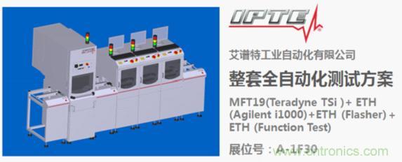 SMT后端是全自動化發(fā)展重點,2015年NEPCON China中國電子展,IPTE將現(xiàn)場演繹精彩的全自動化方案,推出全自動測試線 BTR+ IPTE MFT19’(泰瑞達TSi )+ IPTE ETH(安捷輪i1000)+ IPTE ETH(燒錄器)+ IPTE ETH(功能測試) +BTR),其中串聯(lián)3臺ETH 配置為雙層軌道,將全新演示快捷而安全的無縫連接測試方案,讓所有的測試瓶頸和人為干涉成為歷史。IPTE提供的整套全自動化解決方案,得以幫助電子和機械制造業(yè)實現(xiàn)真正的全自動生產(chǎn)和測試,將顯著提高客戶產(chǎn)品的產(chǎn)量和質(zhì)量。IPTE產(chǎn)線在展會現(xiàn)場的演示時間為每天上午10:30分和下午2:30分,熱忱歡迎新老客戶光臨展臺A-1F30。