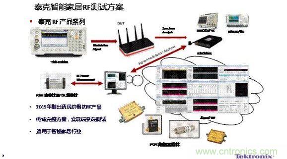 對(duì)于IOT、智能家居無(wú)線連接市場(chǎng)帶來(lái)的商機(jī),也被測(cè)試公司泰克所預(yù)見(jiàn)。泰克科技(中國(guó))有限公司中國(guó)區(qū)渠道開(kāi)發(fā)經(jīng)理王躍偉在演講中指出,目前智能家居中使用的各種無(wú)線技術(shù)存在嚴(yán)重的干擾,他們針對(duì)這一需求專門提供了相應(yīng)的測(cè)試方案。他特別推薦了他們的“混合域”測(cè)試方案和MDO測(cè)試設(shè)備。