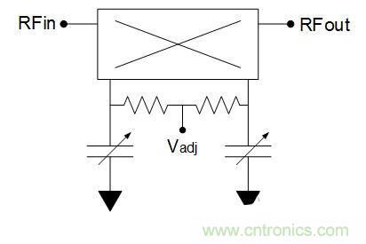 集中的波束無法在需要時導(dǎo)引波束,便用途有限。使用聯(lián)機相位調(diào)節(jié)電路更改各個元件的相對相位,可以導(dǎo)引波束。圖3顯示了基于變?nèi)荻O管的模擬相位調(diào)節(jié)器電路。混合耦合器把輸入和輸出的回波損耗保持在合理水平。如果信號路徑包括該電路,RF性能(尤其是互調(diào)失真)會由于變?nèi)荻O管的非線性性能而降低。